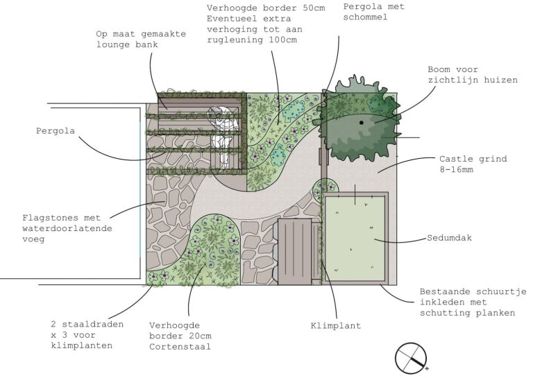 Vanwege de drukke banen van de eigenaren heb ik gekozen voor een onderhoudsvriendelijk beplantingsplan. Zo kan er na een lange werkdag direct worden genoten.